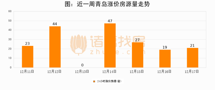 根据诸葛找房数据显示,青岛24小时涨价房源量为21套,较12月16日增加2套,环比上涨10.5%。与此同时,涨价房源占比小幅扩大,业主信心有所提升。