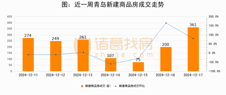 【青岛成交日报】12月17日新房成交361套、二手房246套;涨价房源21套
