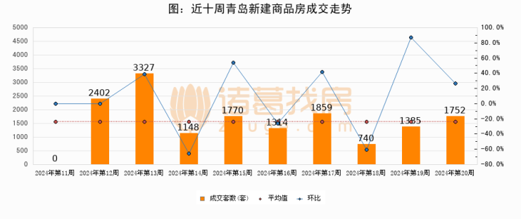 【青岛成交周报】第20周新房成交1752套,二手房1512套,涨价房源411套
