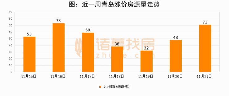 根据诸葛找房数据显示,青岛24小时涨价房源量为71套,较11月20日增加23套,环比上涨47.9%。与此同时,涨价房源占比小幅扩大,业主信心有所提升。