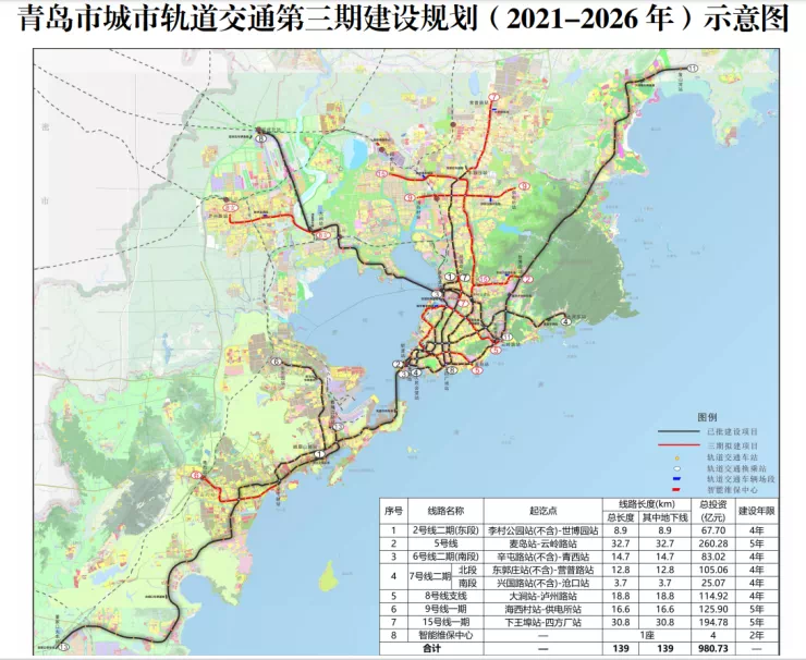 根据青岛轨道交通产业示范区工委表示,15号线一期工程计划2022年开工,2026年左右建成。