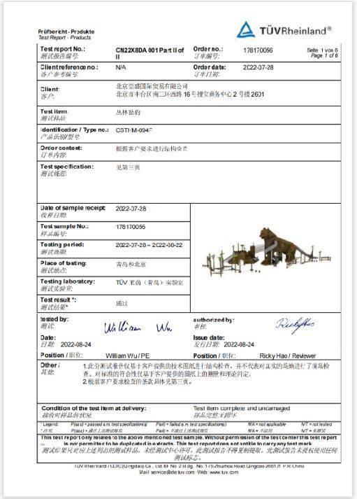 更值得一提的是,区别于国内大多数社区所采用的国标标准,珺府森悦乐园设计及用材均执行欧洲安全技术标准,并具有由国际权威认证机构——德国莱茵机构出具TUV认证证书,最大程度保证了产品安全性。