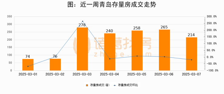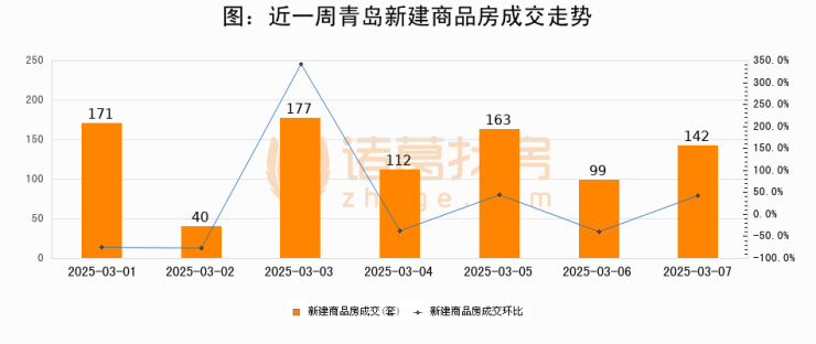 【青岛成交日报】03月07日新房成交142套、二手房214套;涨价房源25套