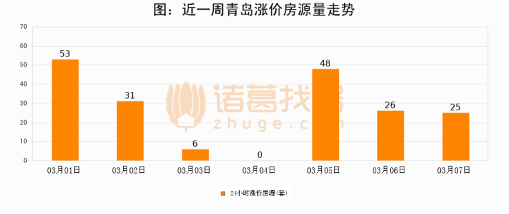 根据诸葛找房数据显示,青岛24小时涨价房源量为25套,较03月06日减少1套,环比下降3.8%。与此同时,涨价房源占比小幅回落,对于购房者来说是一个入市窗口期,购房者可抓住时机入市。