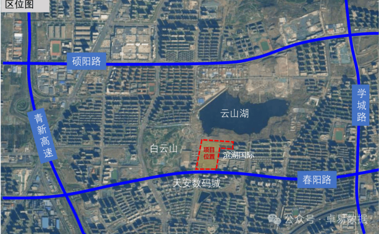 位于城阳街道以北、山水路以南,白云山路以东,规划用地面积64057㎡为商住混合用丝,规划总总建面14.44万㎡(地上建面10241.19㎡),容积率1.6,户数542个。
