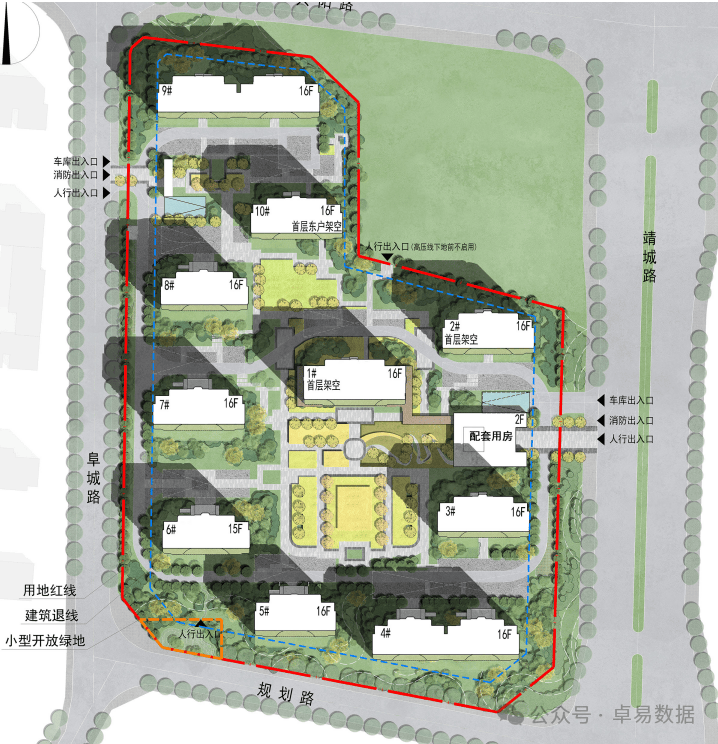 项目位于城阳区城阳街道靖城路以西、兴阳路以南,规划用地面积28992㎡,容积率为2.0,总建筑面积约87199㎡,其中地上建筑面积约59084㎡,地下建筑面积约28115㎡,规划户数377户,建设10栋(9栋16F+1栋15F)。
