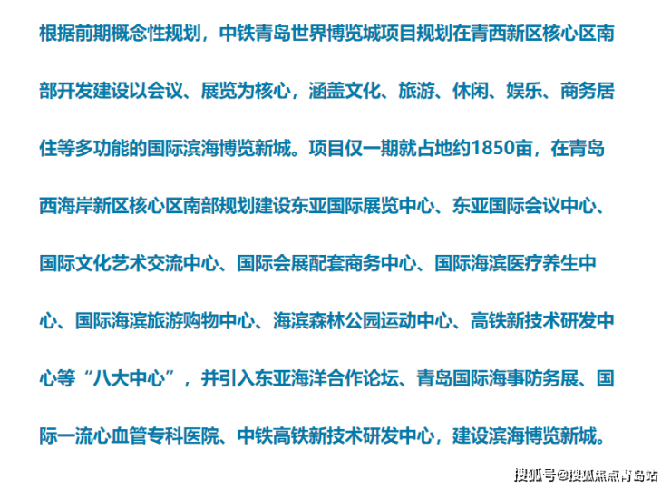 2015年11月4日,西海岸五幅彼此相邻、总面积近60万㎡的地块集中出让,被青岛中铁西海岸投资发展有限公司全部拿下,成交总价超过7.6亿。这就是据传将投资500亿打造的中铁青岛世界博览城项目。