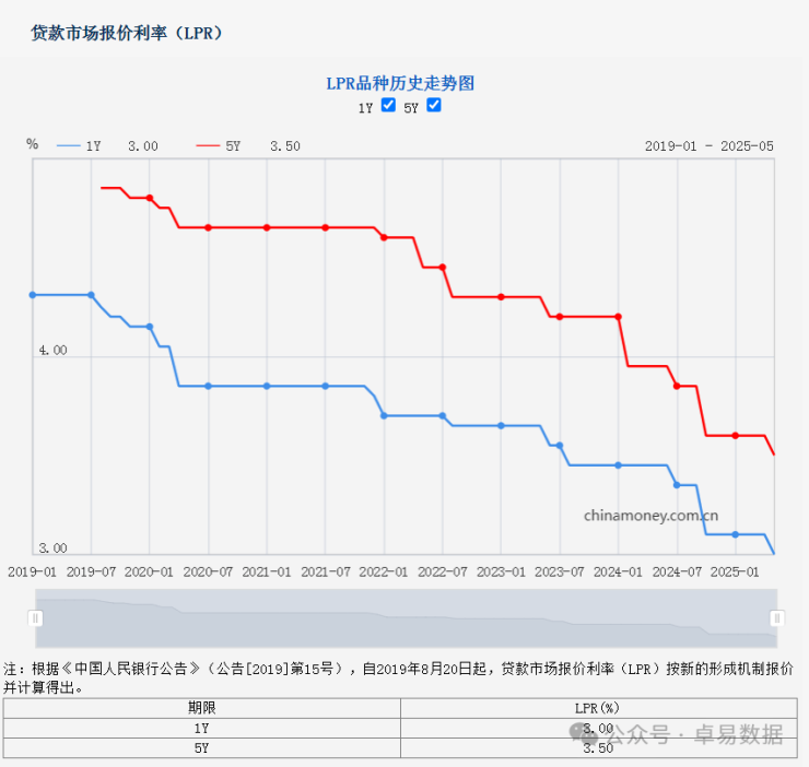 5月20日,央行发布降息信息:5年期LPR为3.5%,与4月的3.6%相比下调10个基点,这是本年度第一次降息!