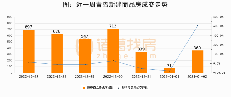 【青岛成交日报】01月02日新房成交360套、二手房9套;涨价房源92套