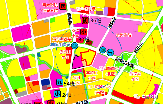 2、教育与医疗:周边配套有现状双语小学(30班)、香江路第三小学(36班)、奋进路初级中学(36班),项目西南侧拟规划一处24班小学,一处54班九年一贯,距青岛大学附属医院黄岛分院约900米,周边交通便利、配套齐全。