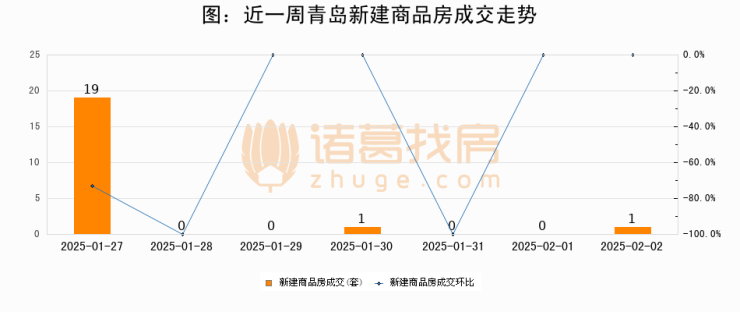 根据青岛市住房和城乡建设局数据显示,2025年02月02日青岛新建商品房成交1套,较昨日增加1套,环比上涨0%