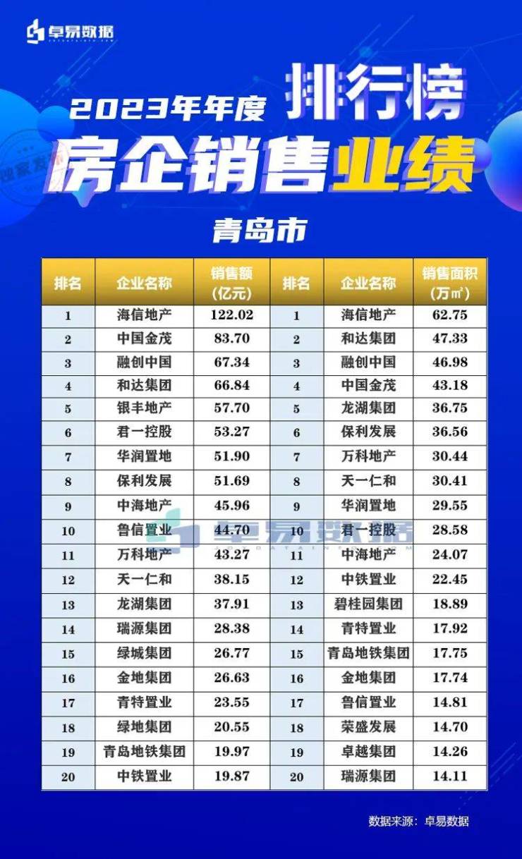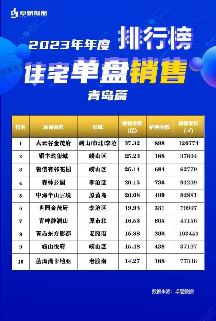 重磅!2023年青岛楼市年度总结,全年销售榜TOP20!
