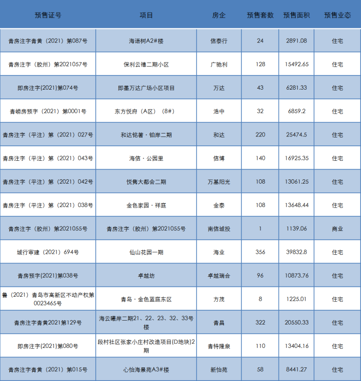 青岛市商品房预售许可证获取情况