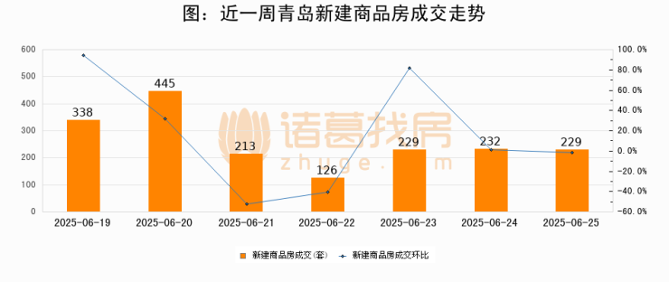 【青岛成交日报】06月25日新房成交229套、二手房271套;
