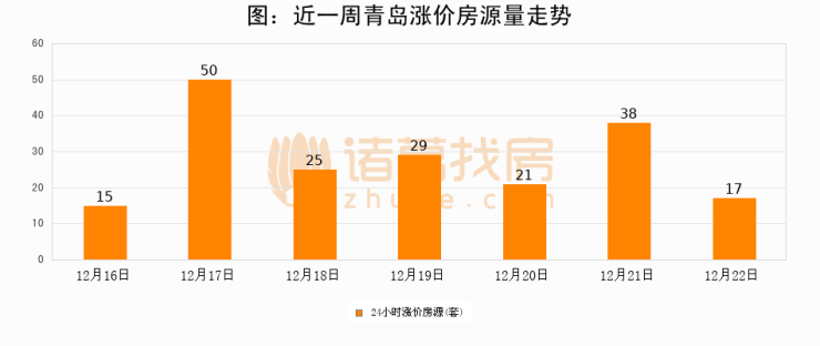 根据诸葛找房数据显示,青岛24小时涨价房源量为17套,较12月21日减少21套,环比下降55.3%。与此同时,涨价房源占比小幅回落,对于购房者来说是一个入市窗口期,购房者可抓住时机入市。