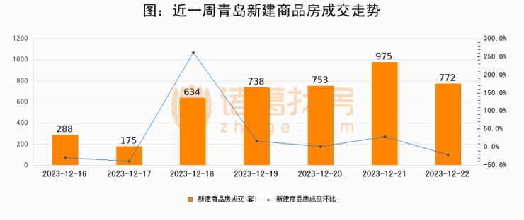 【青岛成交日报】12月22日新房成交772套、二手房196套;涨价房源17套