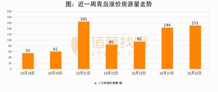 根据诸葛找房数据显示,青岛24小时涨价房源量为151套,较10月24日增加7套,环比上涨4.9%。与此同时,涨价房源占比小幅扩大,业主信心有所提升。