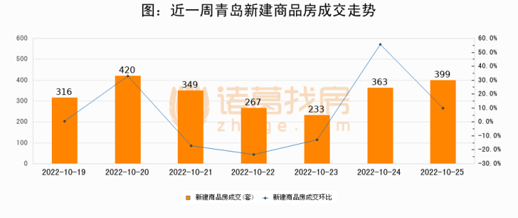 【青岛成交日报】10月25日新房成交399套、二手房222套;涨价房源151套