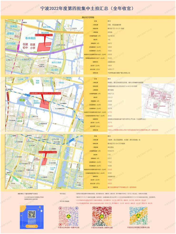 1月12日,宁波市2022年第四批集中供地完成出让,至此2022年度土拍收官。