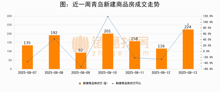 【青岛成交日报】08月13日新房成交224套、二手房232套;