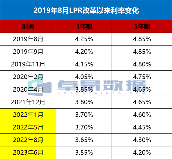 6月20日,央行发布信息降息:5年期LPR为4.2%,较5月的4.3%下调个10基点,这是本年度LPR首次下调,1年期也下调10个基点,也是继去年8月时隔10个月再次降息。