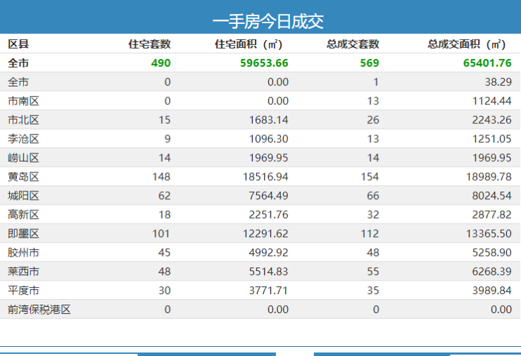 17日青岛新房成交569套 黄岛区住宅成交148套夺冠