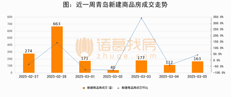【青岛成交日报】03月05日新房成交163套、二手房258套;涨价房源48套