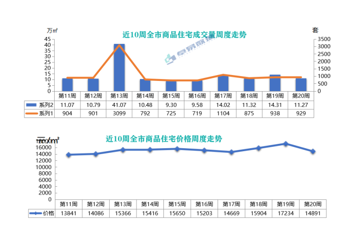 价格方面,上周青岛新建商品住宅均价为14891元/㎡,下降2343元/㎡,降幅为13.60%。