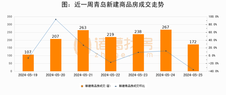 【青岛成交日报】05月25日新房成交172套、二手房75套;涨价房源41套