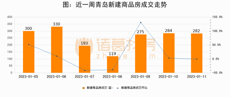 【青岛成交日报】01月11日新房成交282套、二手房189套;涨价房源90套
