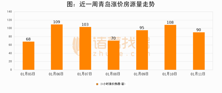 根据诸葛找房数据显示,青岛24小时涨价房源量为90套,较01月10日减少18套,环比下降16.7%。与此同时,涨价房源占比小幅回落,对于购房者来说是一个入市窗口期,购房者可抓住时机入市。