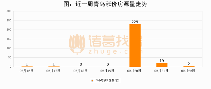 根据诸葛找房数据显示,青岛24小时涨价房源量为2套,较02月21日减少17套,环比下降89.5%。与此同时,涨价房源占比小幅回落,对于购房者来说是一个入市窗口期,购房者可抓住时机入市。