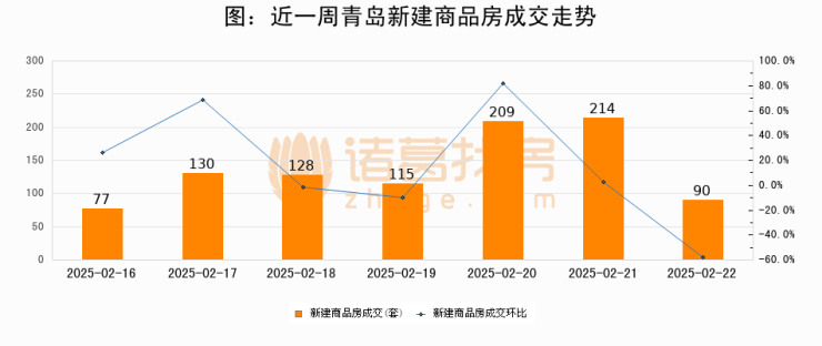 【青岛成交日报】02月22日新房成交90套、二手房73套;涨价房源2套