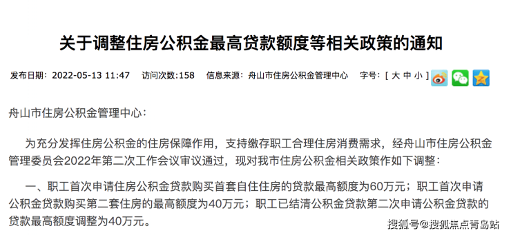 5月13日,浙江省舟山市住房公积金管理中心发布《关于调整住房公积金较高贷款额度等相关政策的通知》(简称《通知》)。