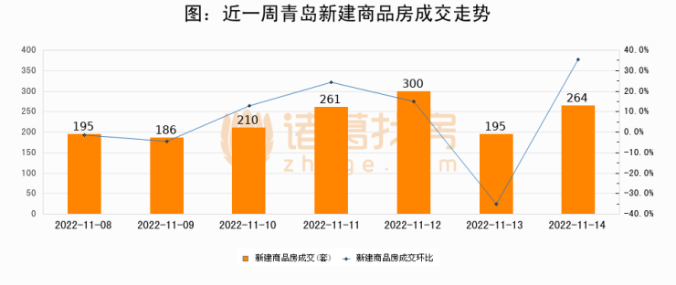 【青岛成交日报】11月14日新房成交264套、二手房193套;涨价房源58套