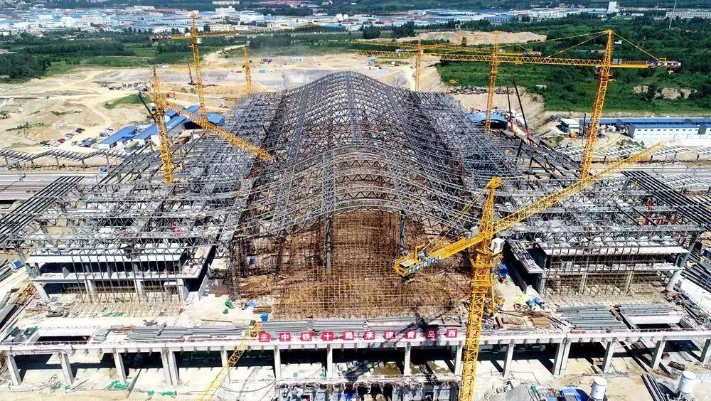 青岛西站站房主体封顶!