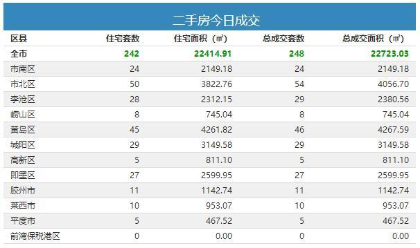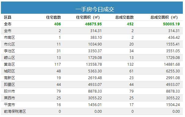 8日青岛新房成交452套 黄岛区住宅成交117套夺冠