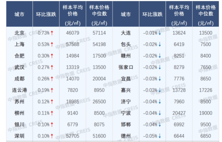 其中,仅成都的二手房均价上涨,环比涨幅0.06%。淮安、温州、盐城等城市的二手房跌幅靠前,环比跌幅分别达1.80%、1.43%和1.33%。